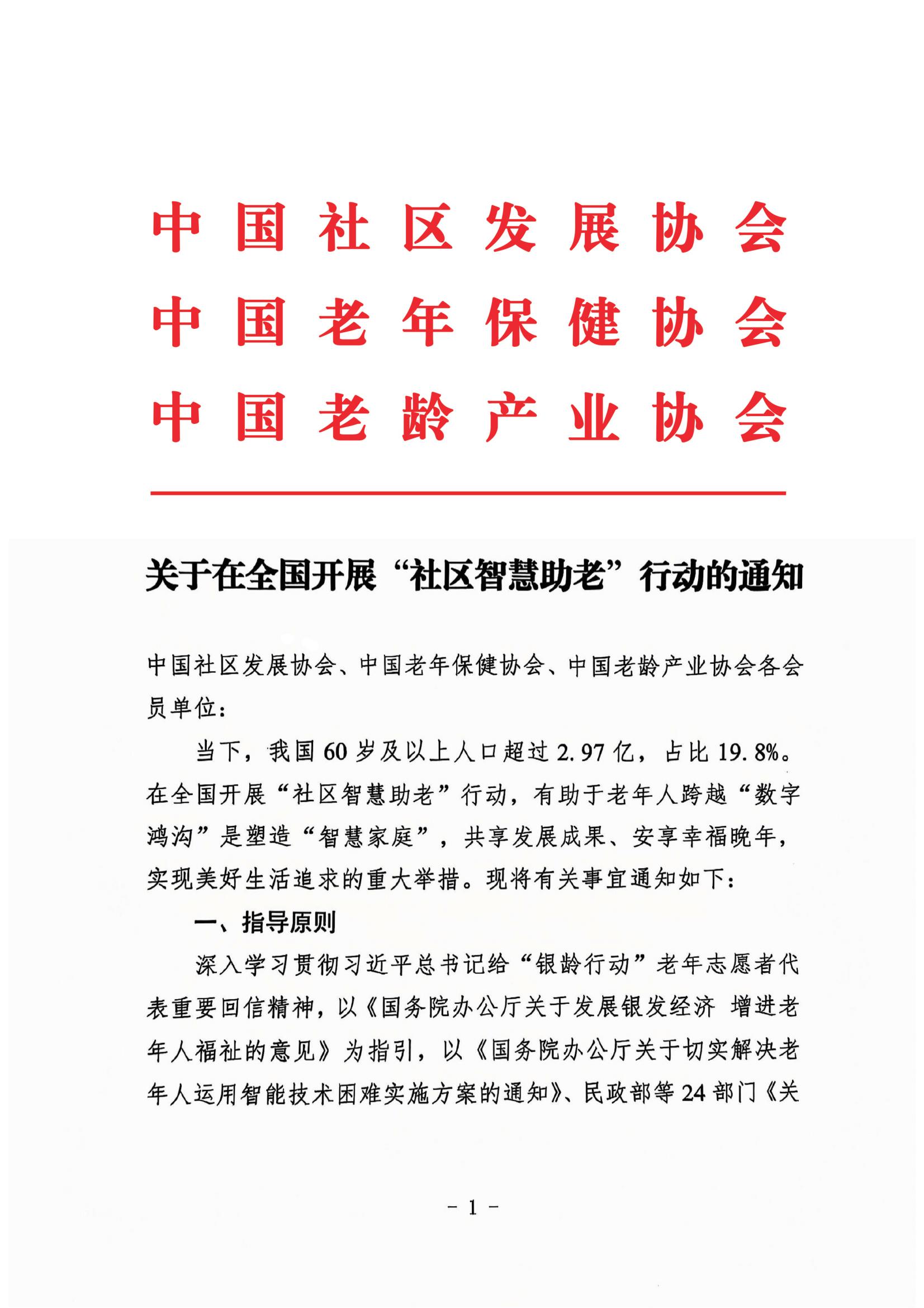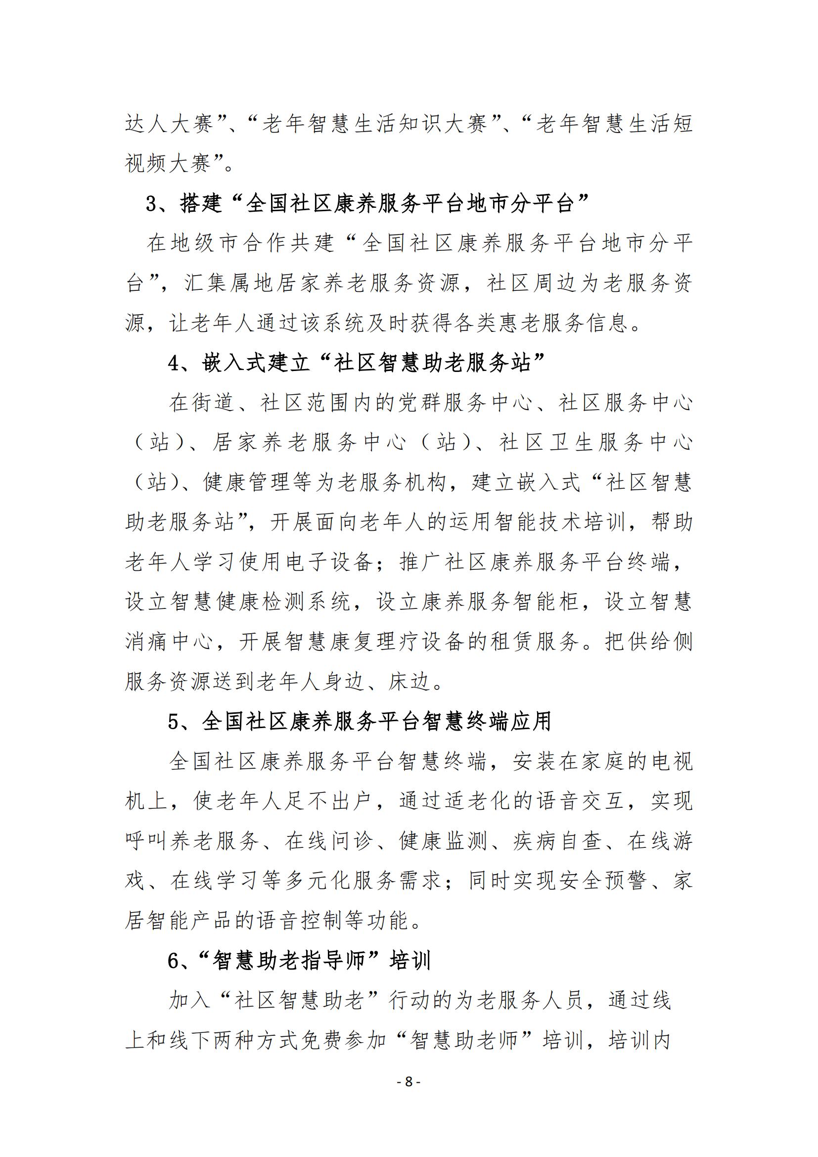 关于在全国开展“社区智慧助老”行动的通知