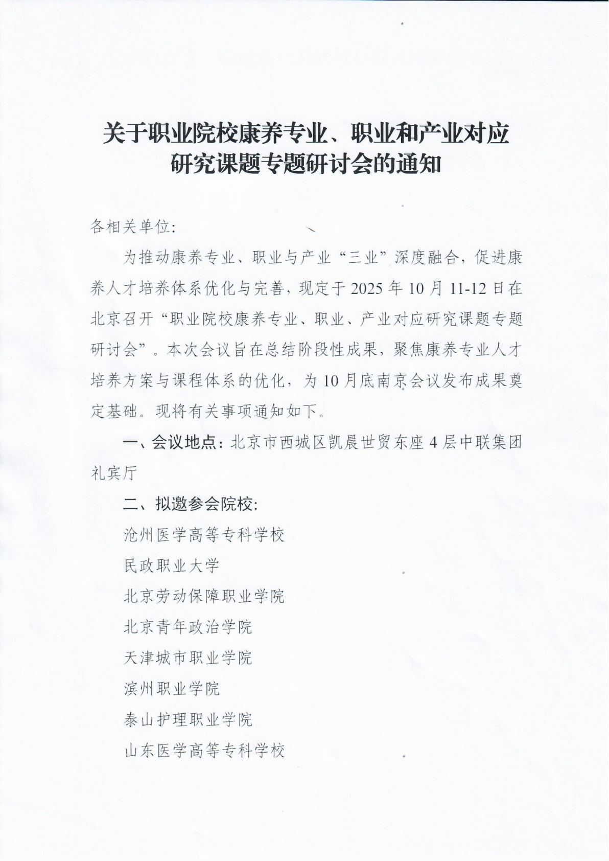关于职业院校康养专业、职业和产业对应研究课题专题研讨会的通知